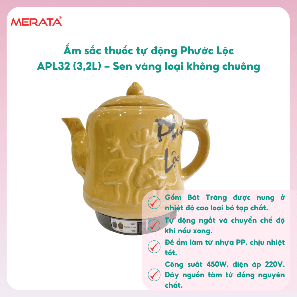 Ấm sắc thuốc tự động Phước Lộc APL32 (3,2l) – Sen vàng loại không chuông
