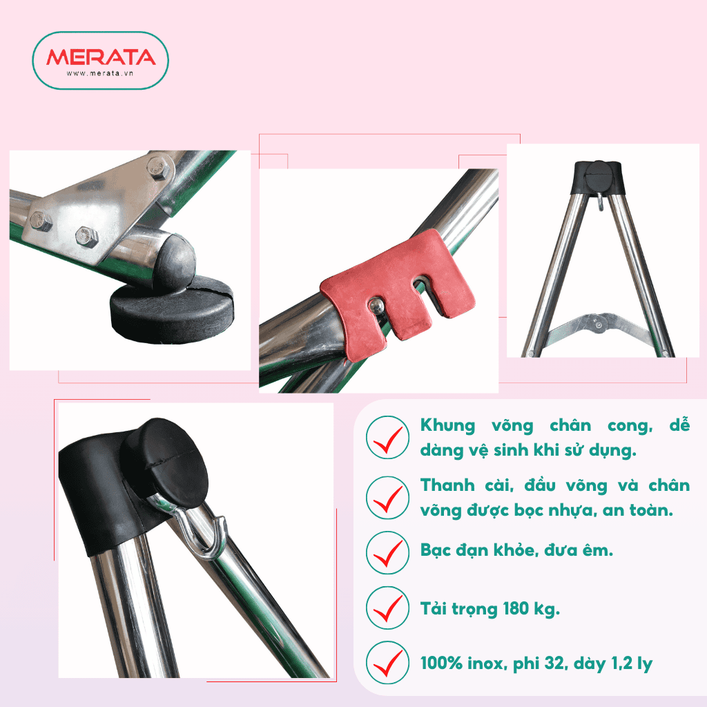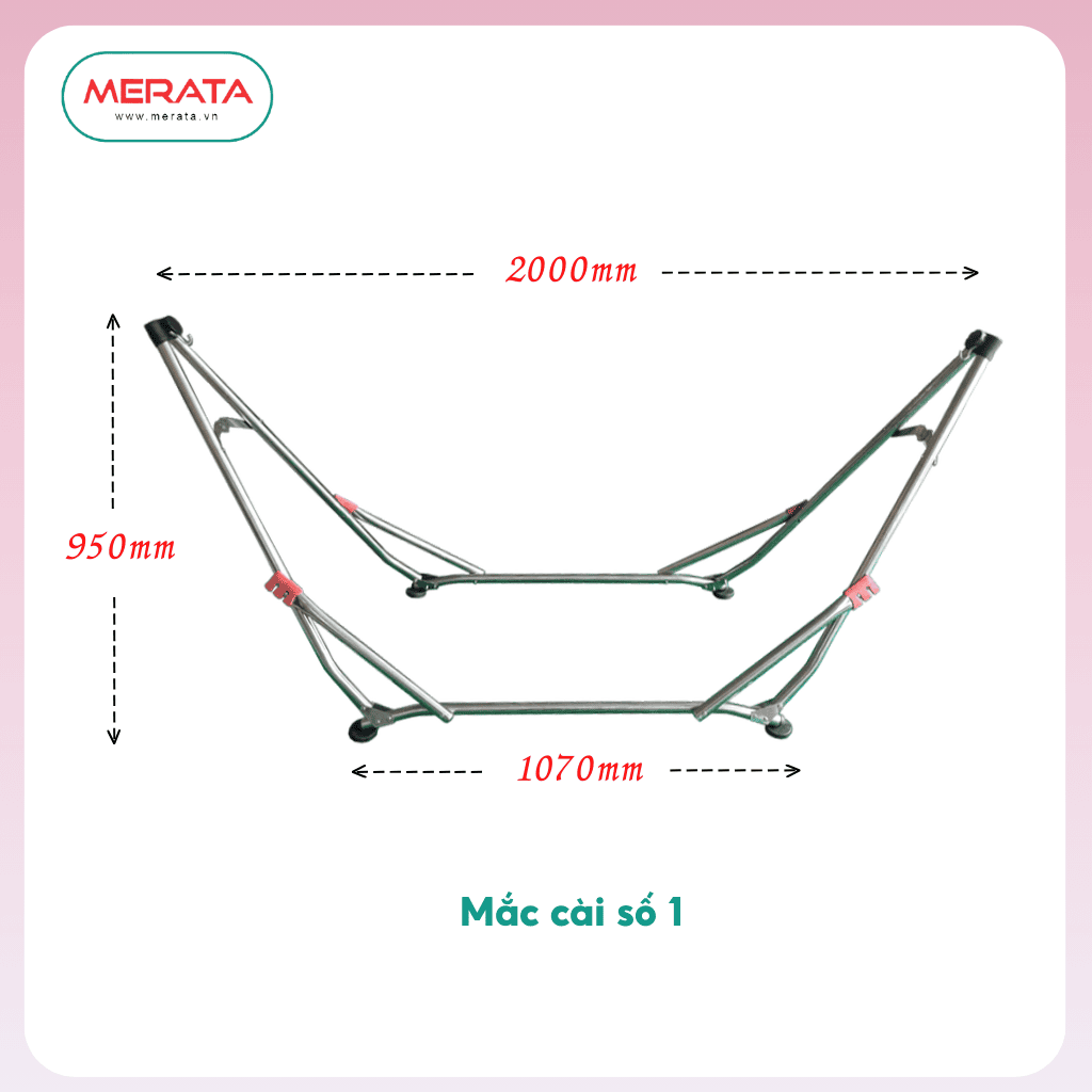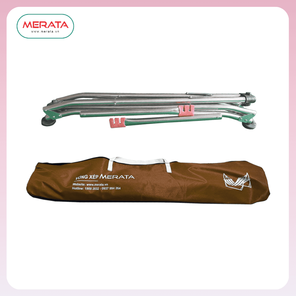 KHUNG VÕNG XẾP MERATA - VMI02 thuộc dòng khung võng xếp cao cấp được nâng cấp từ dòng khung võng VMI01, khả năng chịu tải lớn hơn lên đến 180 KG. Có bọc đế nhựa an toàn