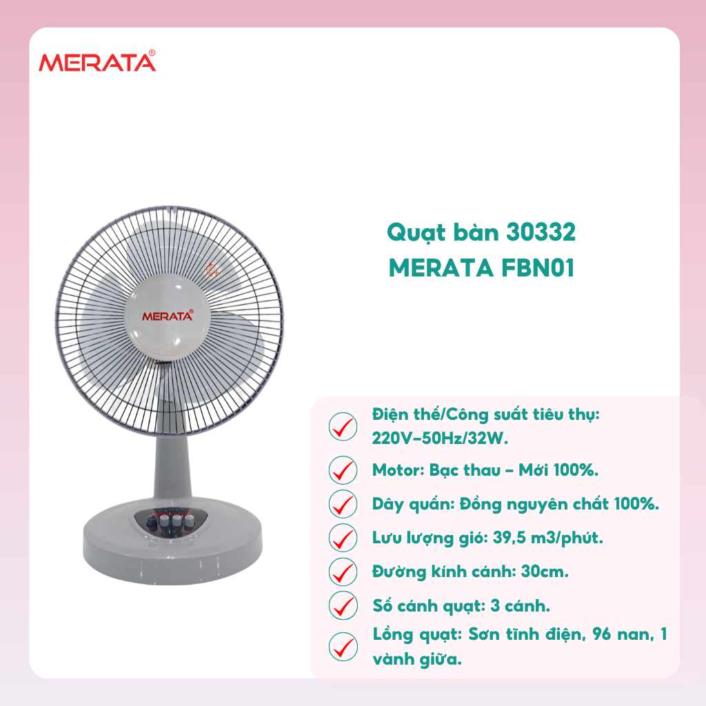 Quạt bàn 30332 MERATA FBN01 - Hàng Chính Hãng, Gió Mạnh, Êm Ái, Bền Đẹp, Tiện LợiSản phẩm tiện ích cho mỗi gia đình.