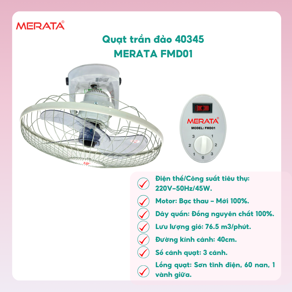 Quạt trần đảo 40345 MERATA FMD01 - Hàng Chính Hãng, Gió Mạnh, Êm Ái, Bền Đẹp, Tiện LợiSản phẩm tiện ích cho mỗi gia đình.